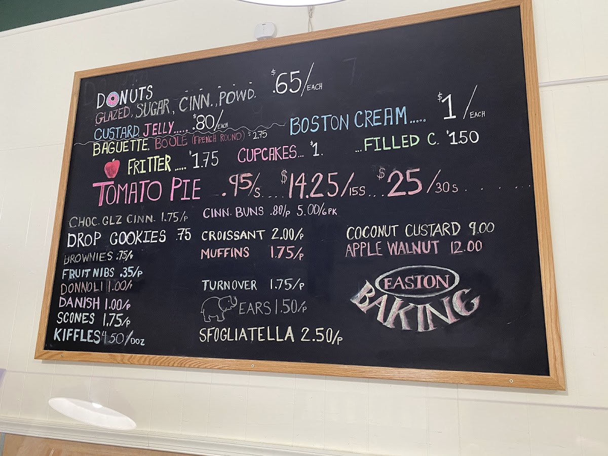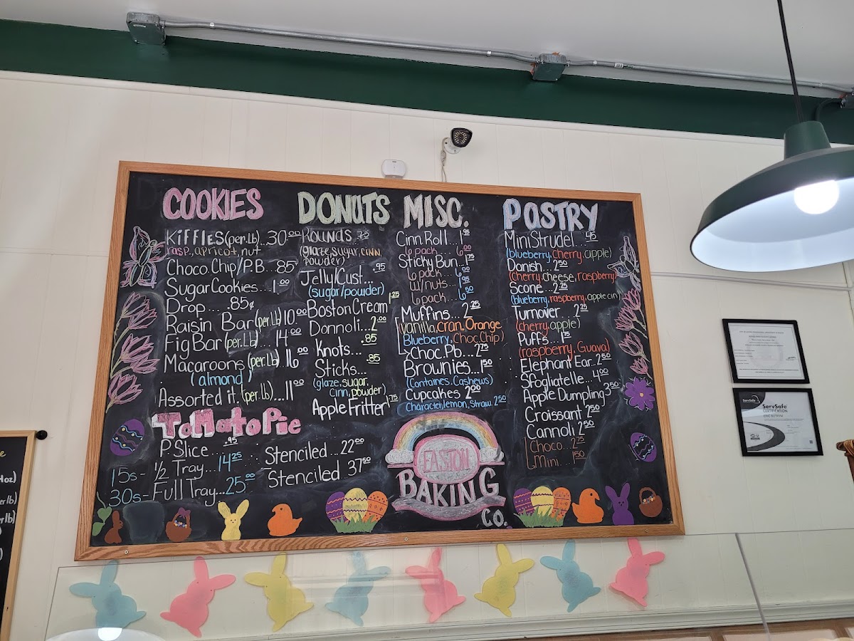 Easton Baking Company offers a thoughtfully curated menu that captures the comforting essence of a local bakery. The selection leans into simple pleasures—freshly baked donuts, classic muffins, and flaky croissants—perfect for a leisurely morning or a casual afternoon break. Whether you’re stopping in for a quick coffee with a cider doughnut or planning something special like a wedding or birthday cake, the menu balances everyday treats with carefully crafted celebratory options.